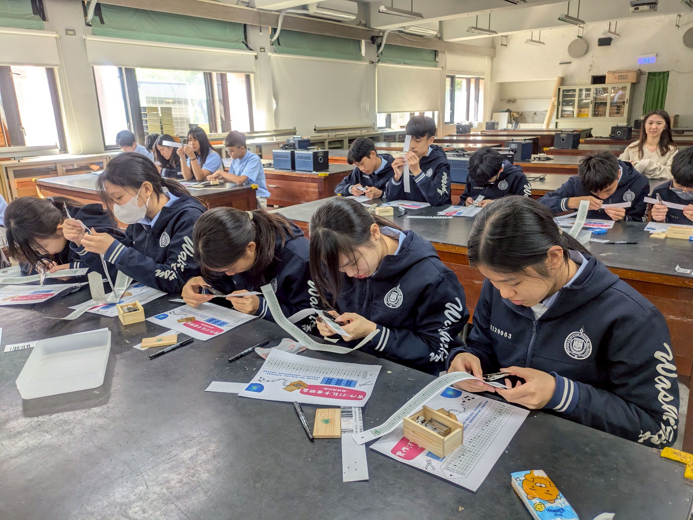 華盛頓中學參訪成大科教中心,透過自製條碼與音樂盒等實作體驗,在趣味中瞭解數學於日常生活中的運用。