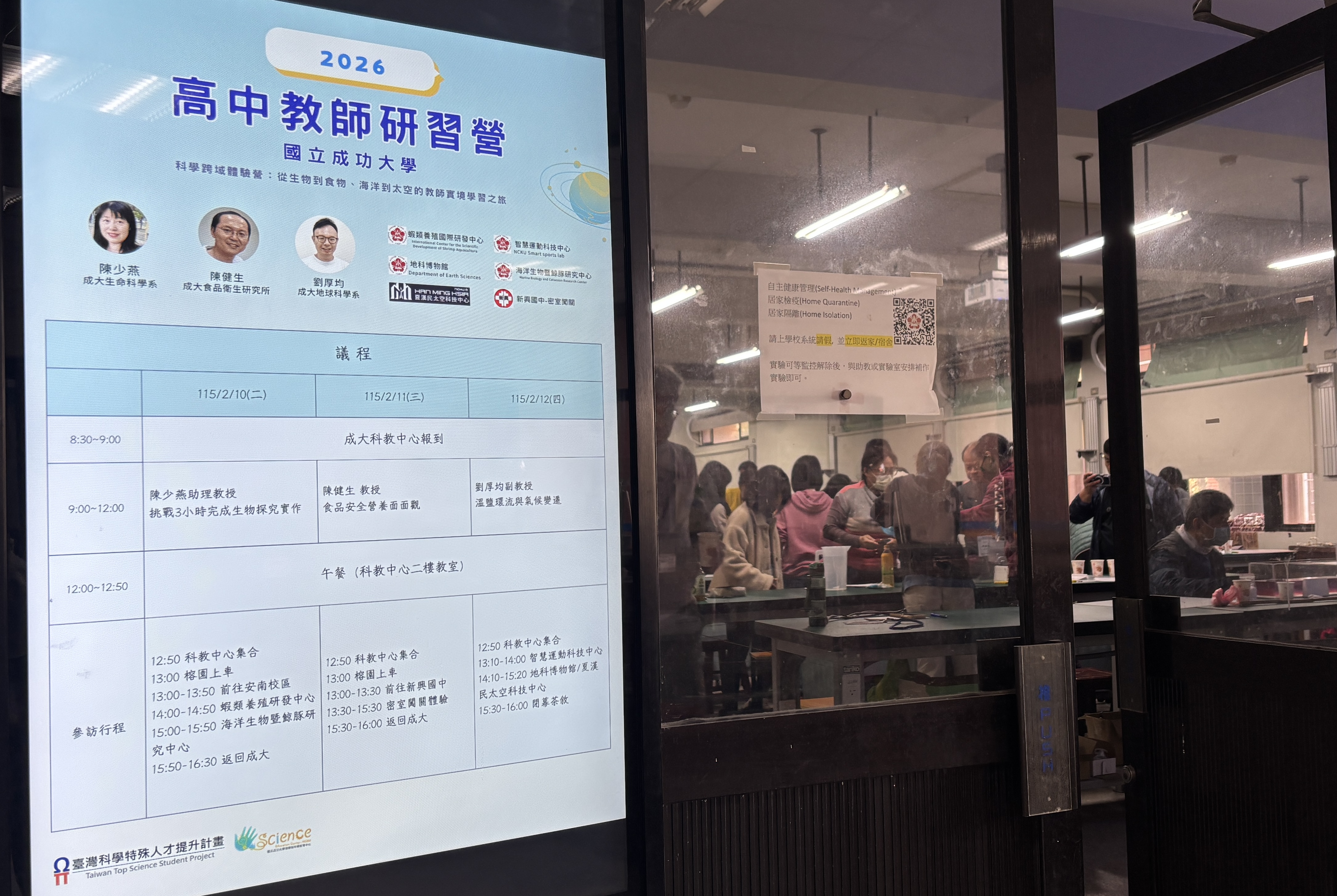 2/10(二) 挑戰3小時完成生物探究實作(陳少燕助理教授)x蝦類養殖研發中心與海洋生物暨鯨豚研究中心參訪 2/11(三) 食品安全營養面面觀(陳健生教授)x新興國中密室逃脫闖關體驗 2/12(四) 溫鹽環流與氣候變遷(劉厚均副教授)x智慧運動科技中心參訪x地科博物館與夏漢民太空科技中心x茶敘交流(徐旭政主任)