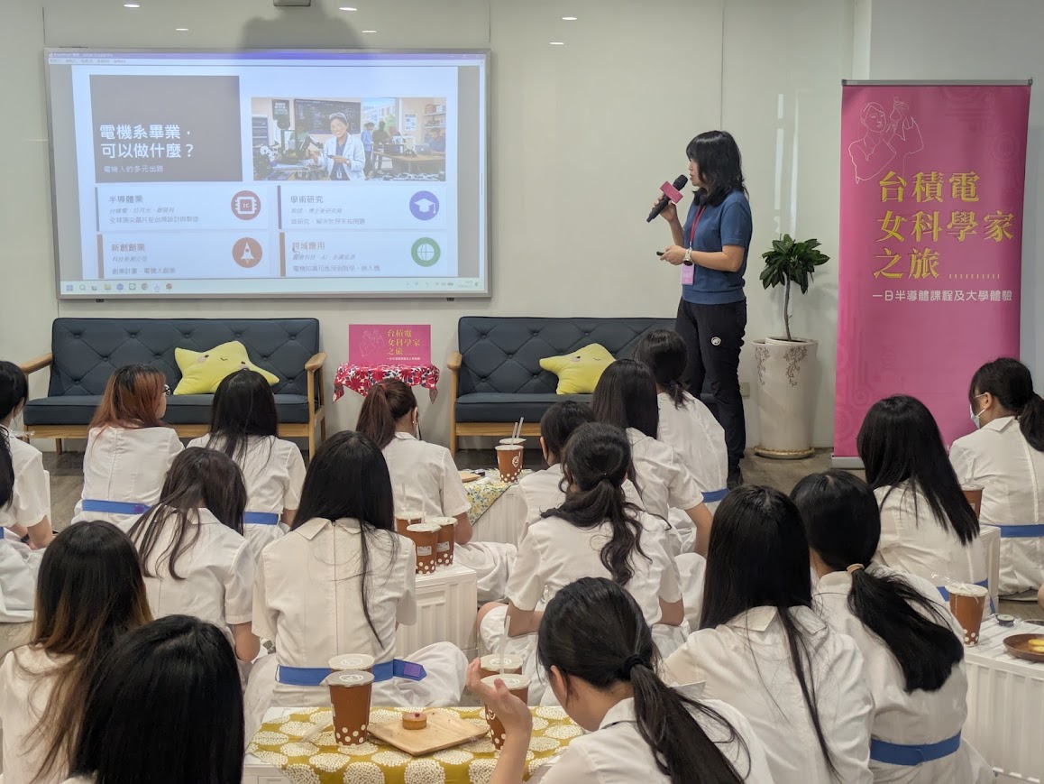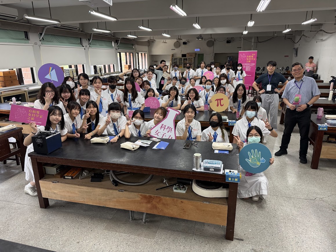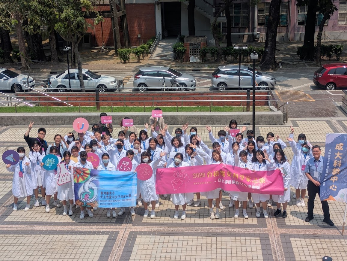 臺南女中參與「2026台積電女科學家之旅」!上午由徐旭政主任與光電系周昱薰副教授授課,下午參訪實驗室,並由理學院李欣縈副院長、微電子所涂維珍所長、生技系洪良宜特聘教授暨學務長,以及工設系邱柔慈學姐分享生涯探索經驗。