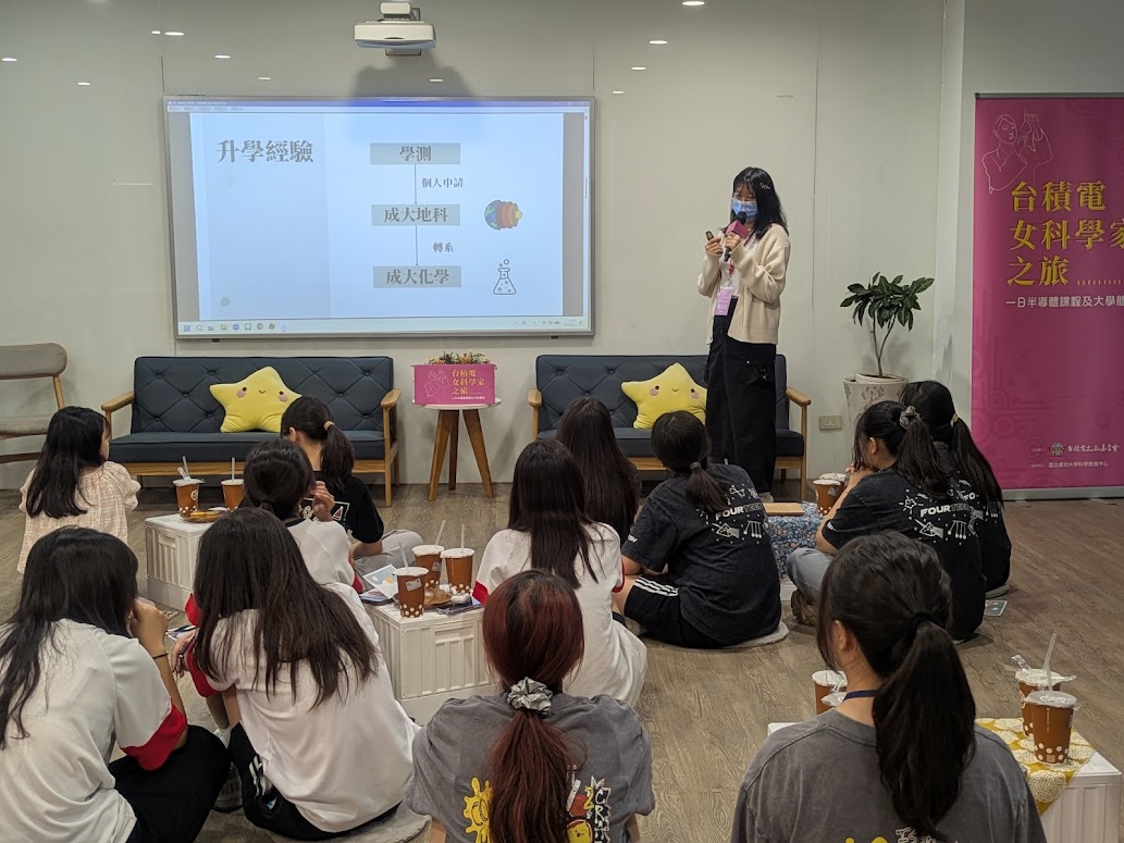歡迎鳳山高中參與「台積電女科學家之旅:一日半導體課程及大學體驗」 上午學習精彩的半導體實作課程,下午前往三座實驗室參訪,並邀請理學院李欣縈副院長、生科系王涵青教授、化工系陳美瑾教授,化學系蕭鈺涵學姊,分享生涯探索經驗。