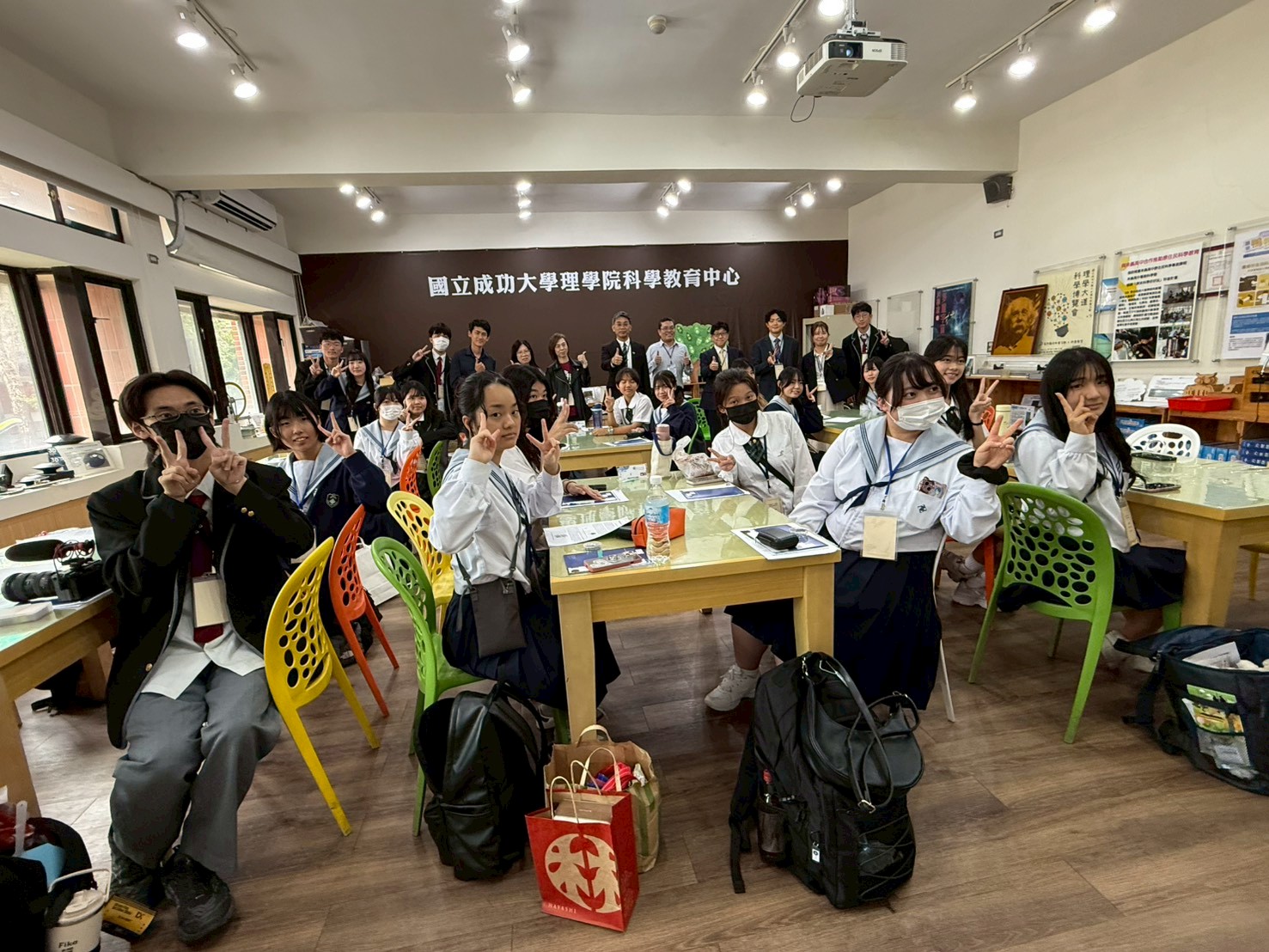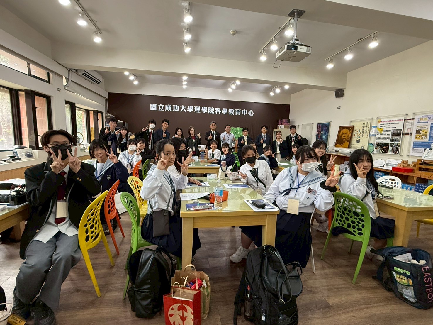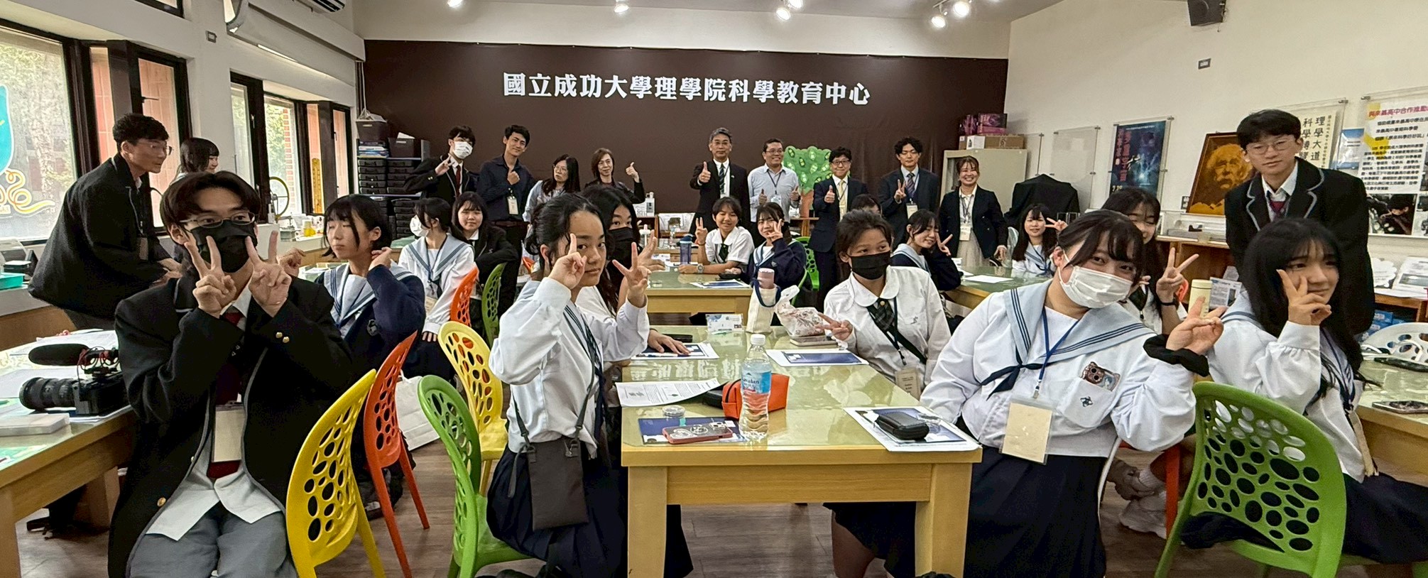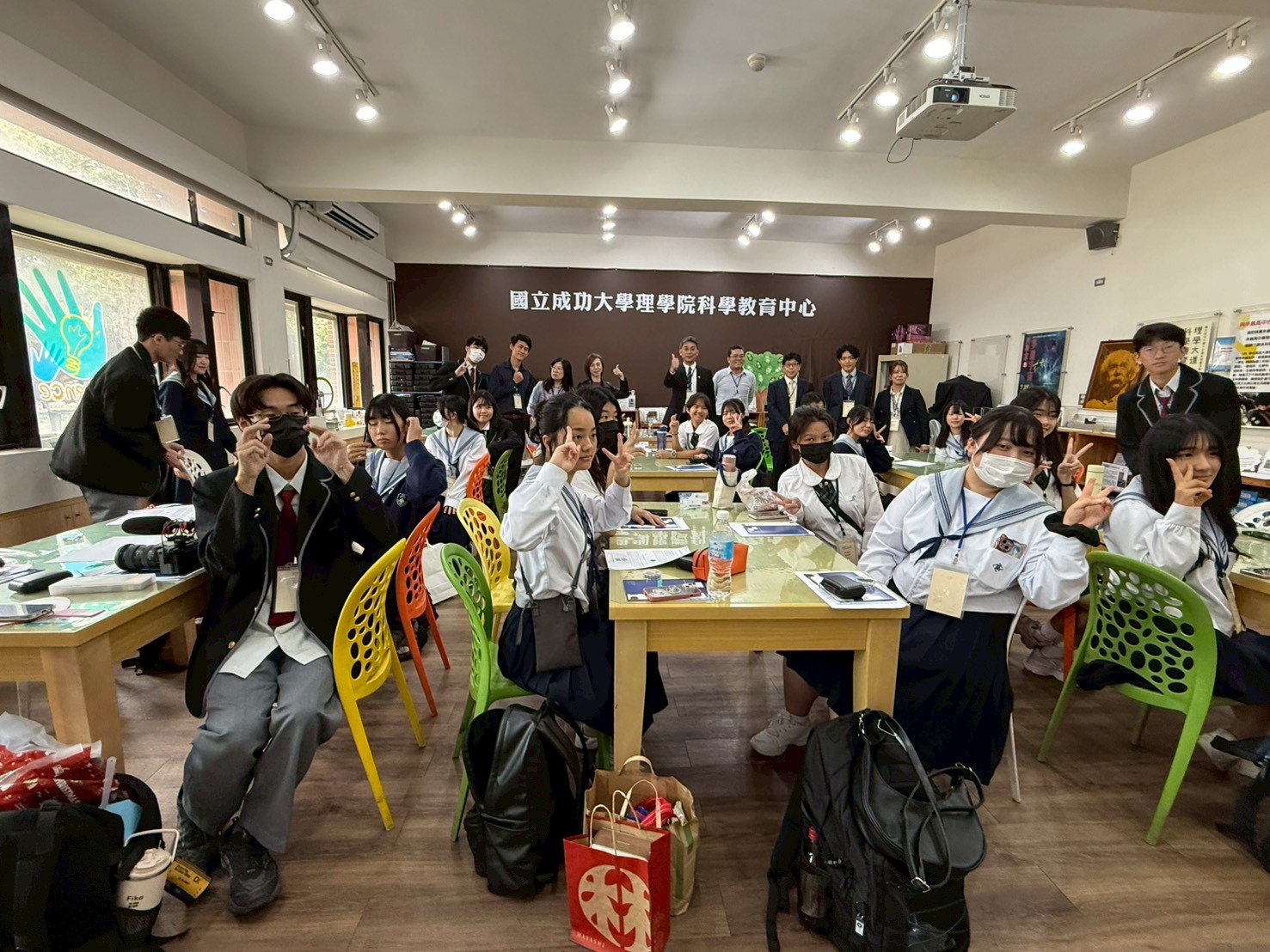 來自南科實中與日本上野高校的師生齊聚一堂,在成大科教中心參加一場妙趣橫生的跨國科學交流活動。大家不僅探索了神秘的宇宙射線,還體驗偏振以及透光片,及光的折射等反應