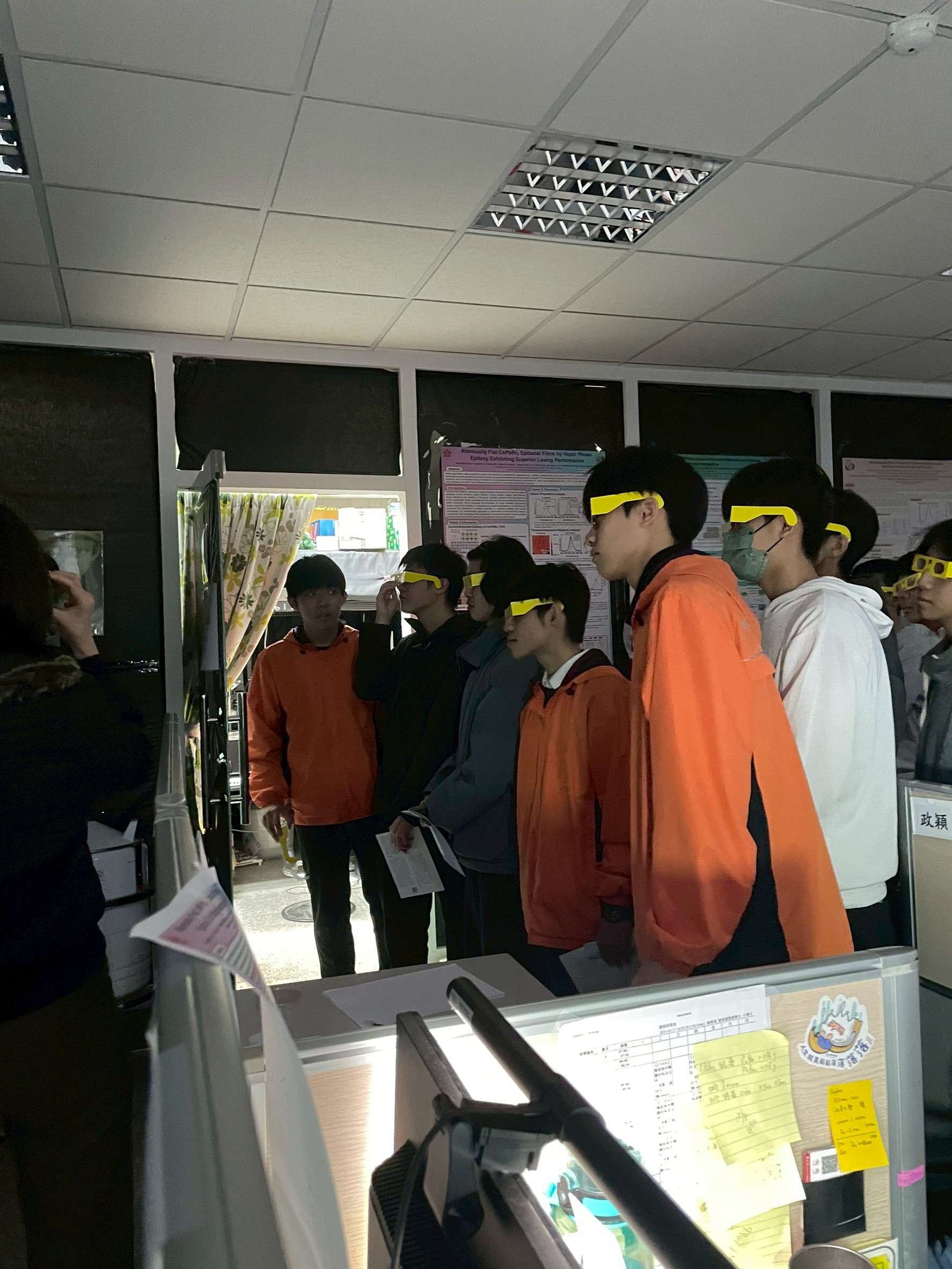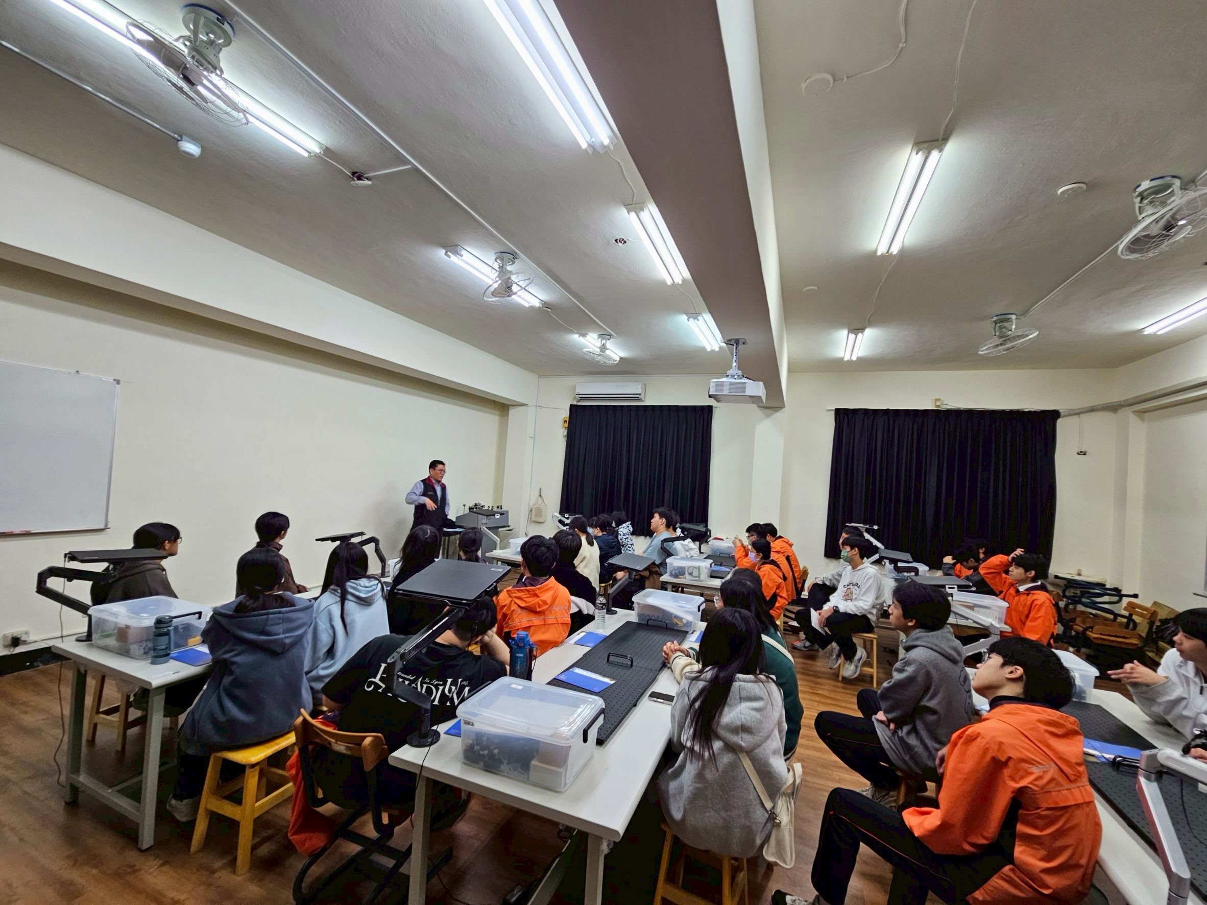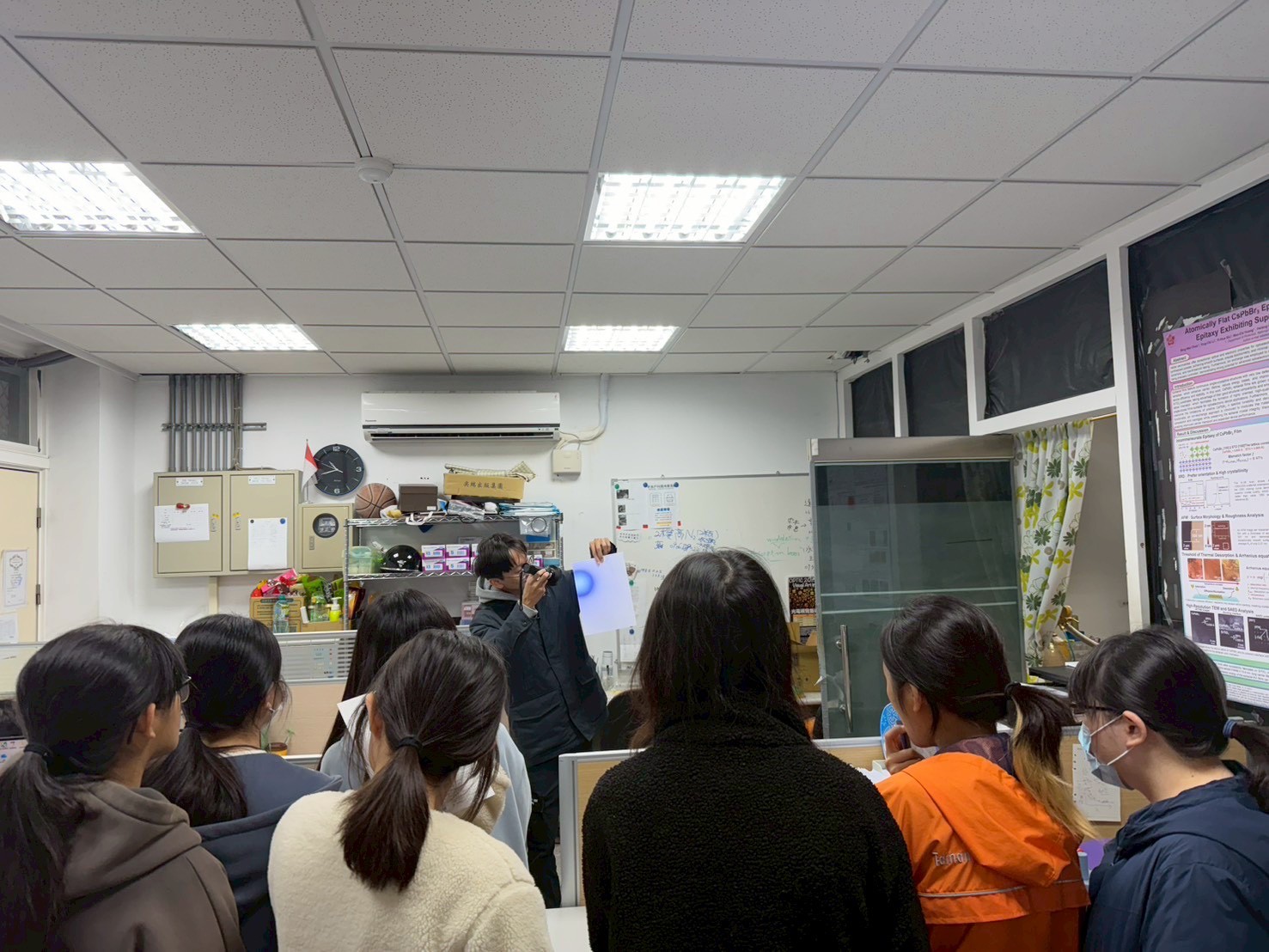 徐旭政教授帶領土城高中學生參訪光電系實驗室。
