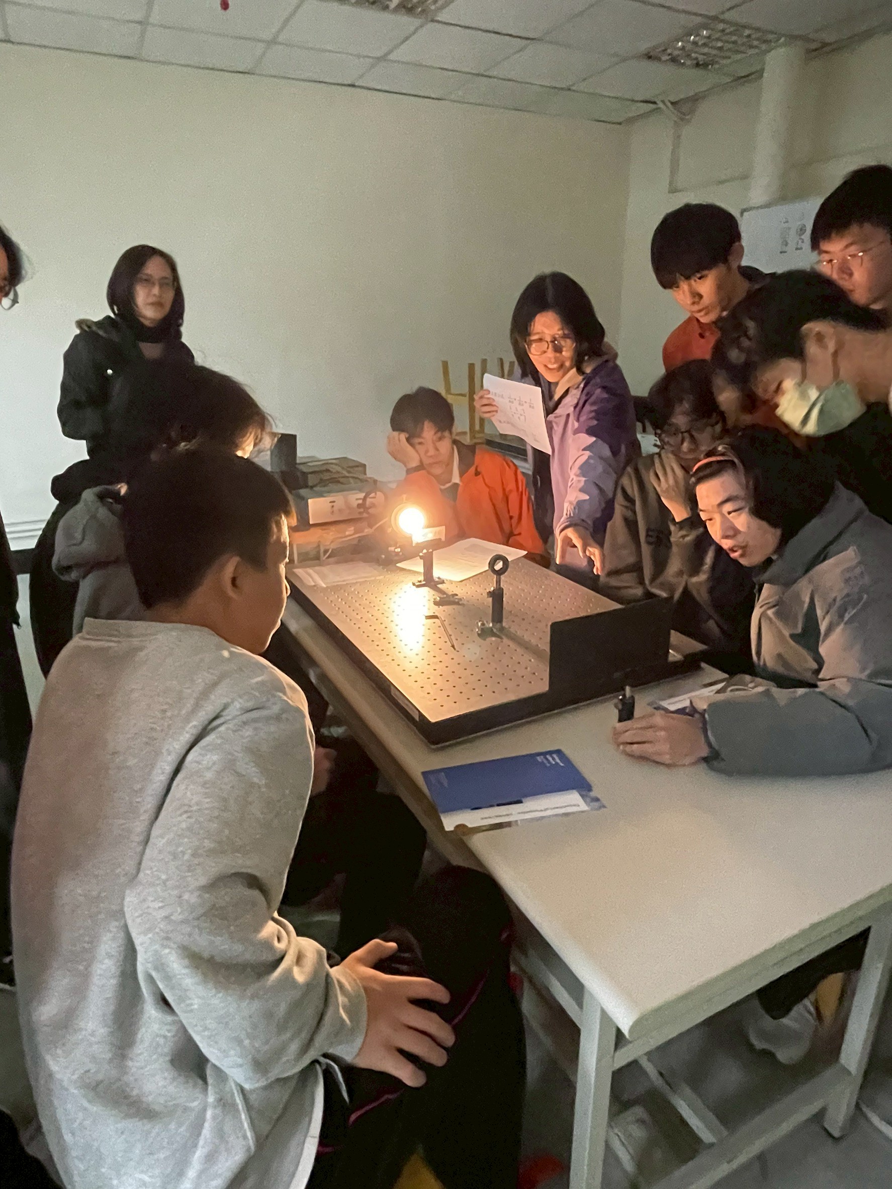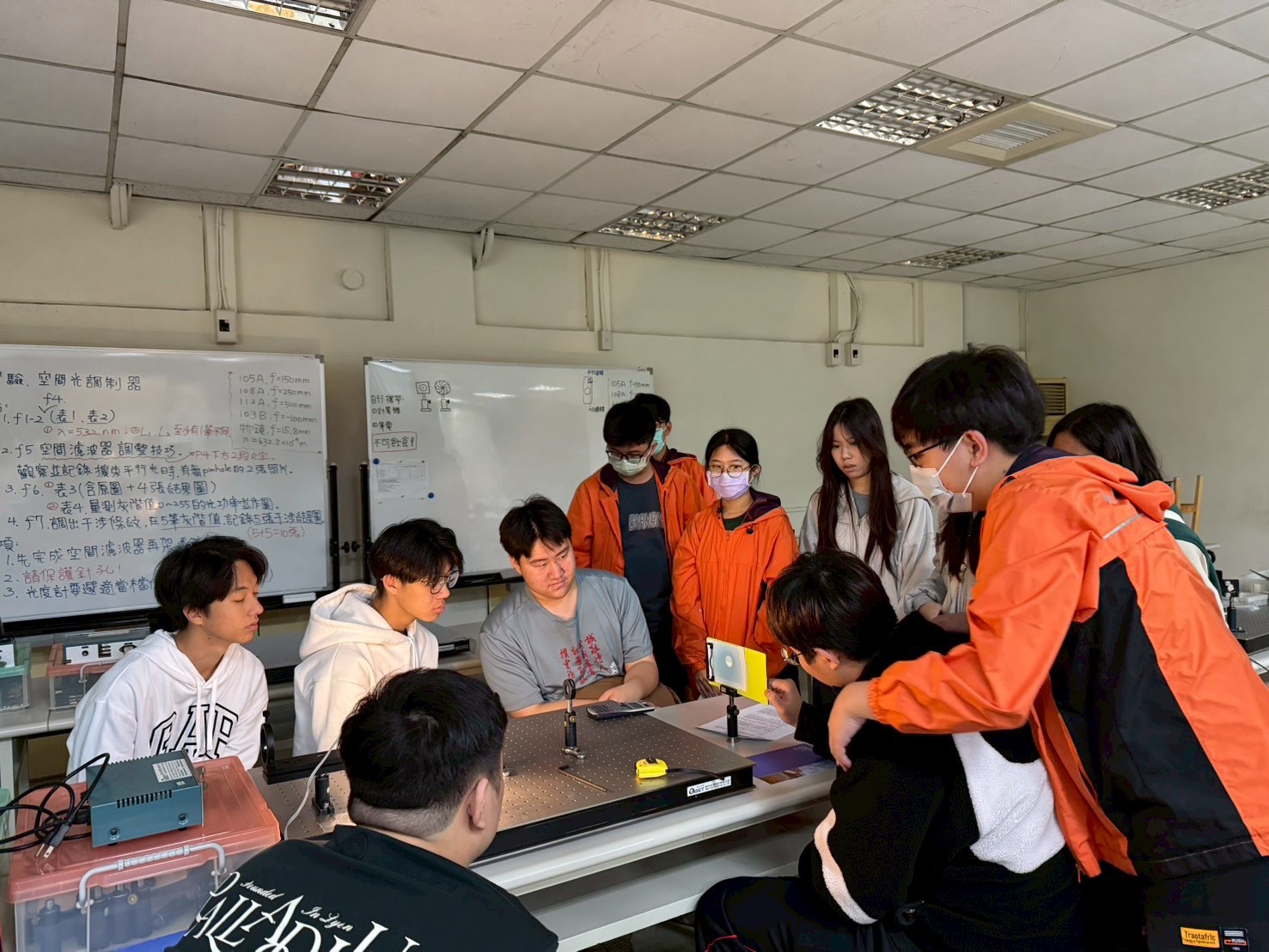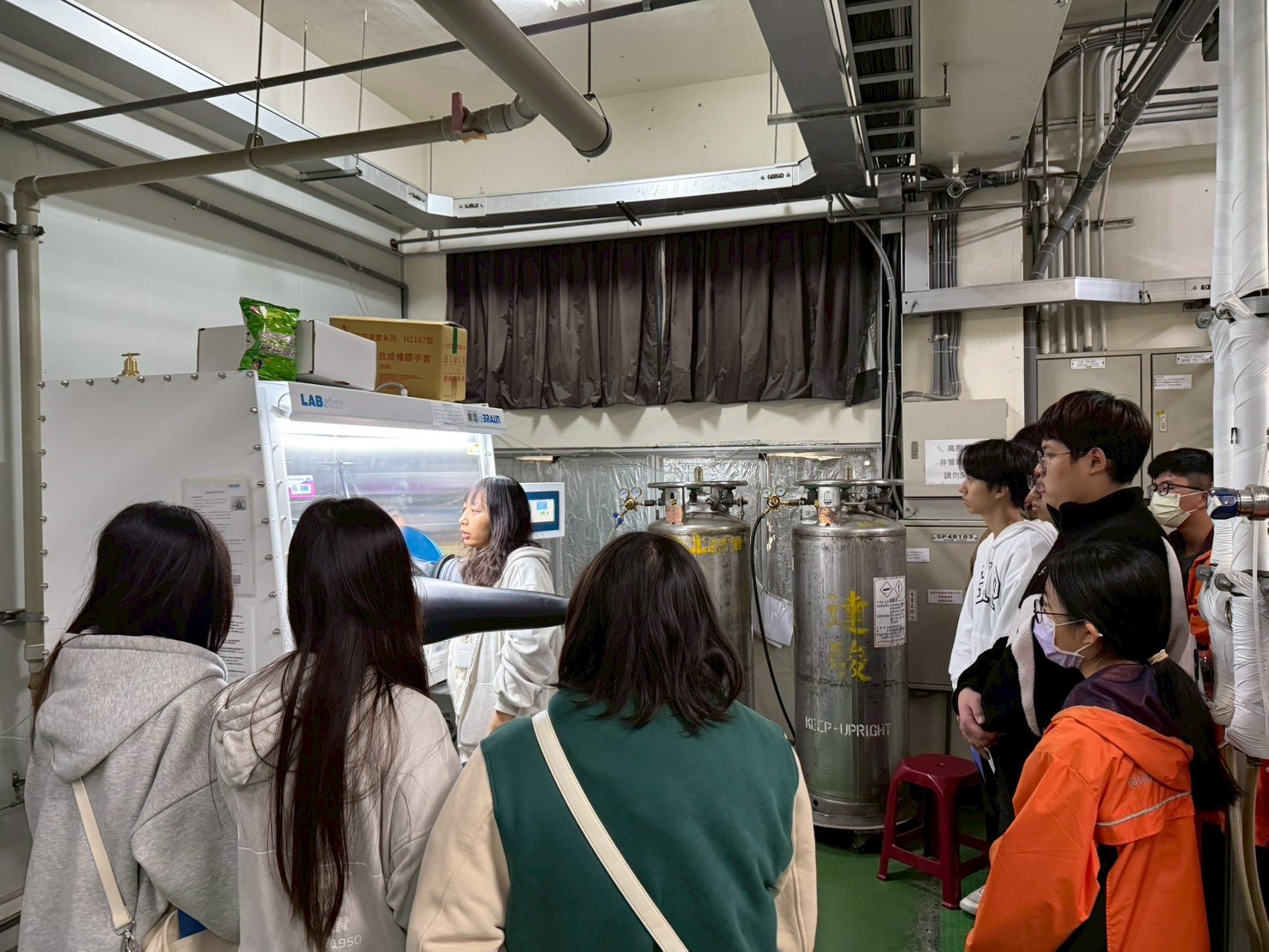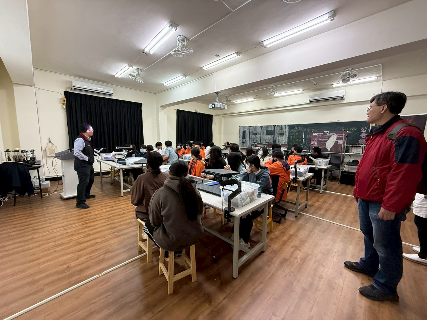 徐旭政教授帶領土城高中學生參訪光電系實驗室。