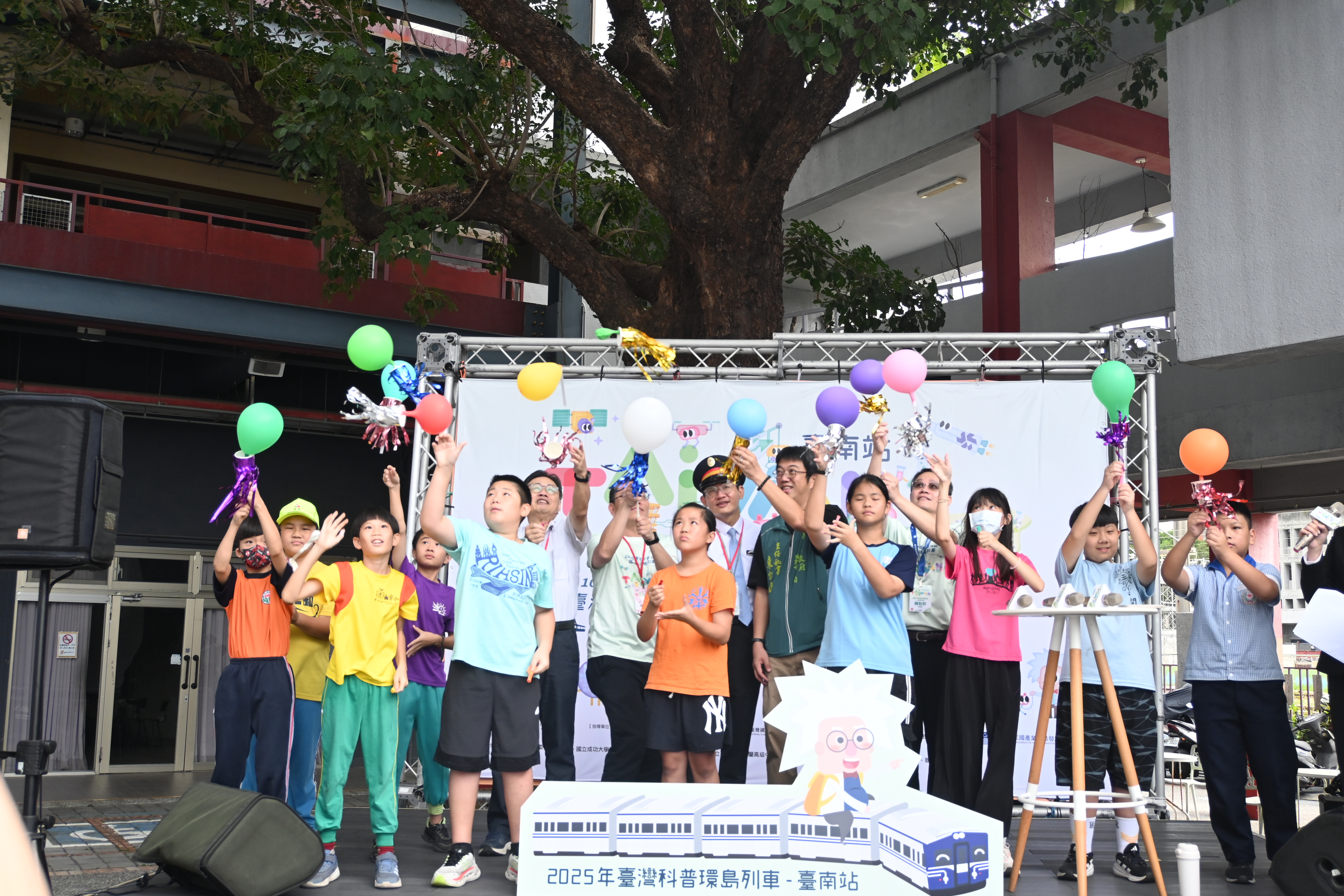 國家科學委員會所支持的臺灣科普環島列車活動,在臺南站由成大理學院科教中心主辦,召集成大學生志工與臺南地區的國高中生團隊一起合作科普市集,第三天來到臺南站,共有 10 間學校、近 300 人從臺南站啟程展開精彩的科學旅程。在地高中學生們發揮創意佈置攤位,希望能將深奧的科學知識轉化為淺顯易懂的內容,激發小學生對科學的好奇與探索精神